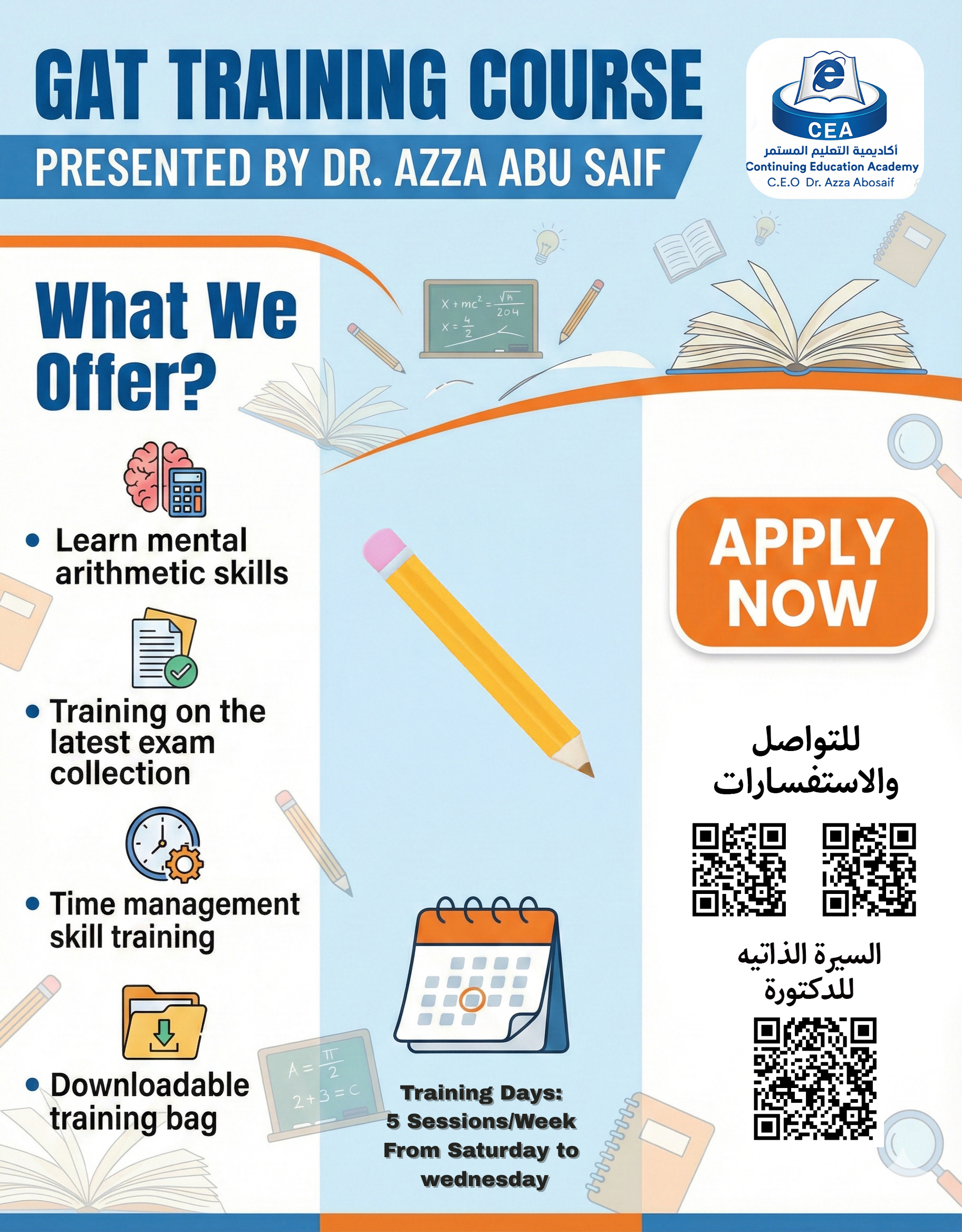 أؤمن أن التعليم ليس مجرد نقل للمعلومة، بل هو رسالة لبناء الإنسان وتيسير سبل النجاح. بدأت رحلتي منذ عام 1428هـ بشغف كبير لتمكين الطلاب والطالبات، ومن قلب التحديات ولدت "أكاديمية التعليم المستمر" لتكون شريكاً حقيقياً لكل طموح يسعى لاجتياز اختبارات المركز الوطني للقياس والرخصة المهنية بكل ثقة واقتدار.